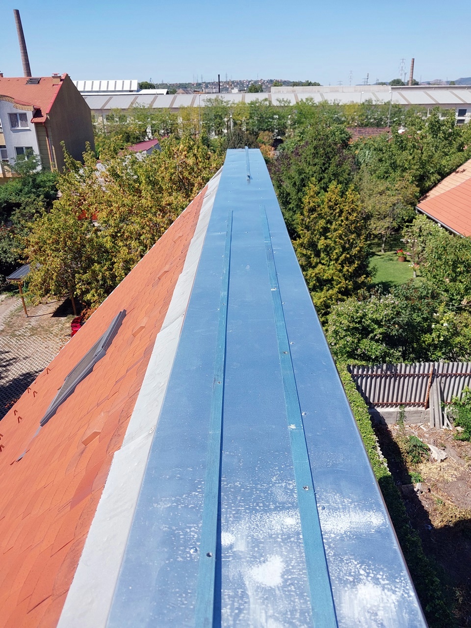 Bádogos szerkezetek javítása: Elöregedett kéményszegélyek, falszegélyek, hajlatbádogok cseréje vagy javítása, hogy az illesztéseknél se folyjon be a víz.